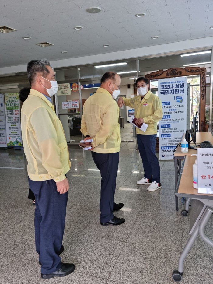 조규호 함안부군수는 9월 13일부터 10월 29일까지 코로나 상생 국민지원금 읍·면 창구 지급을 앞두고 관내 읍·면 주민센터를 방문해 추진상황 및 방역 사항 특별점검을 실시했다.