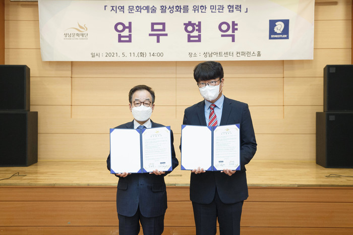 협약식에서 성남문화재단 노재천 대표이사는 “역사와 전통을 자랑하는 스테들러 한국지사와 지역의 문화예술 활성화 기여에 함께할 수 있어 기쁘다”면서 “재단과 스테들러 양 기관의 자원과 역량, 예술의 만남은 새로운 협력의 모델을 보여줄 것이다”라고 밝혔다.