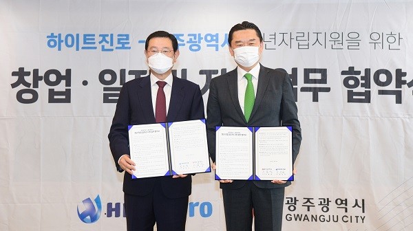 업무협약은 광주시와 하이트진로가 저소득층 청년들의 일자리 확대를 위해 함께 추진하는 청년자립지원 프로그램을 실행하기 위해 추진됐다.