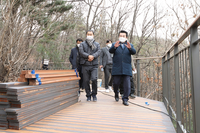 이날 현장을 방문한 박 의장은 자락길을 둘러보며 구청 관계자와 의견을 나누고 현장을 점검하는 시간을 보냈으며 동행한 관계공무원에게 구민들이 시설물 이용에 불편함이 없도록 안전을 최우선으로 공사를 마무리해줄 것을 당부했다.