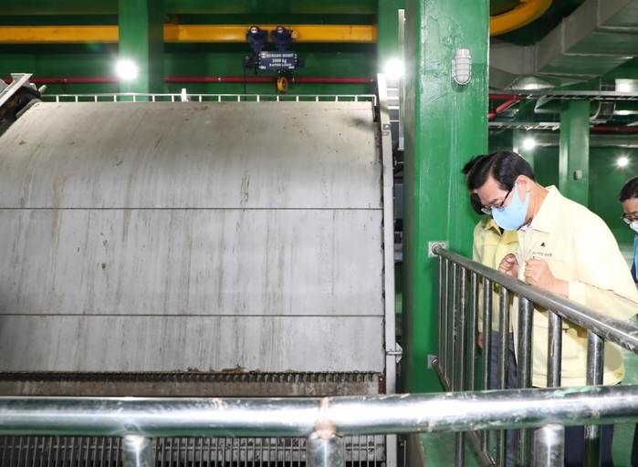 성장현 서울 용산구청장이 24일 한강교 빗물펌프장을 찾아 펌프 정상가동 여부를 확인하고 펌프 및 전기·기계·수로 시설 등을 집중 점검하며 재해대비 상황을 살폈다. 사진은 성 구청장(가운데)이 수방대비 시설 점검을 하고 있는 모습. (사진제공=용산구청)