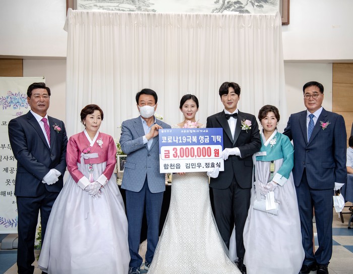 이날 12시 문화예술회관에서 결혼식을 올린 부부는 새로운 인생의 출발점을 뜻 깊게 시작하고 싶다는 뜻을 밝히며 축의금의 일부를 코로나19 성금으로 기탁한 것으로 알려져 주위를 훈훈하게 했다.
