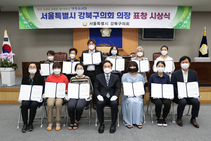 [시민일보 = 홍덕표 기자] 서울 강북구의회(의장 이백균)는 최근 의회 본회의장에서 지역발전 유공자 12명에게 의장표창을 수여했다고 10일 밝혔다.