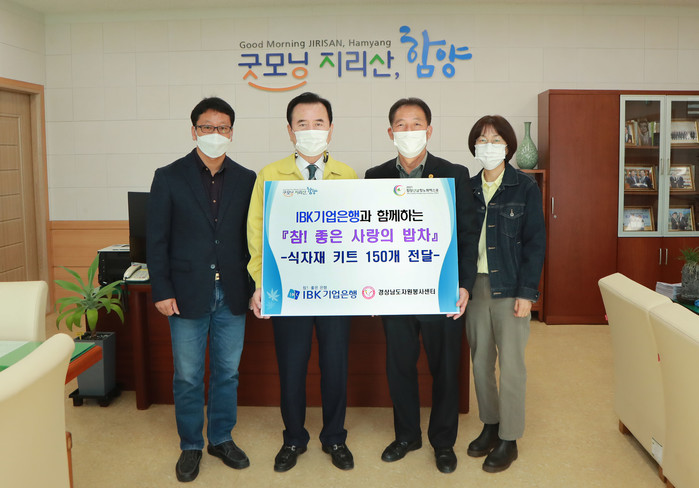 서춘수 함양군수는 “평소에도 다양한 사회적 공헌활동을 해오고 있는 IBK기업은행에서 코로나19로 인해 그 어느 때보다 어려운 시기를 겪고 있을 이웃들에게 정성이 가득한 식자재 키트를 제공해 주셔서 진심으로 감사드린다.”면서 “앞으로도 우리 주변의 소외되고 어려운 이웃들을 위한 좋은 활동 부탁드린다.”고 말했다.