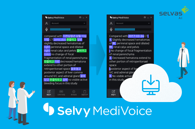 셀비 메디보이스는 국내 최초로 인공지능 기반의 음성인식 엔진을 탑재한 의료녹취 솔루션으로 의료진들이 영상 데이터 판독 소견에 대한 ▲실시간 음성 저장, ▲문서화, ▲시스템 등록 등을 한 번에 완료할 수 있도록 지원하는 것이다.