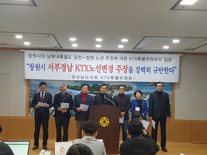 특히 특위는 그간 경남에서 가장 많은 특혜를 받아 고속성장과 발전을 거듭해온 창원시가 서부경남 KTX 노선 변경까지 욕심내는 것은 경남 독식의 단면을 자인하는 것과 다름없고, 경남의 균형 발전에 역행하는 시대착오적인 주장으로 볼 수 있다고 주장했다.