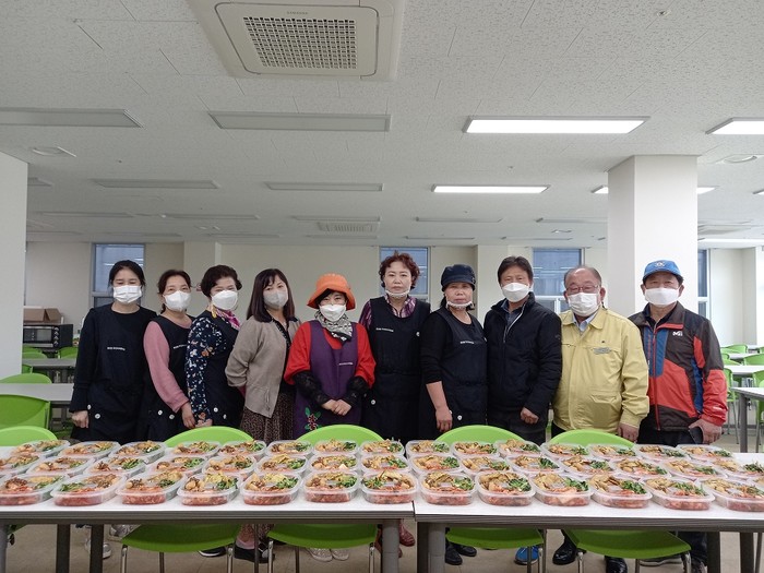경기 여주시 흥천면 주민자치위원회는 지난 9일 '따뜻한 밑반찬' 봉사활동을 펼쳐 밑반찬을 만들고 자치위원들과 흥천면 행정복지센터 직원들이 50가구에 반찬을 배달했다. 사진은 이날 봉사자들이 기념촬영을 하는 모습. (사진제공=여주시청)