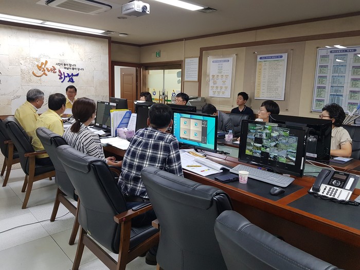 경기 하남시는 17일 파주에서 발생한 아프리카돼지열병과 관련해 연제찬 부시장 주재로 안전도시국장 및 농식품위생과장 등 11명이 참석한 가운데 긴급 대책회의를 개최, 방역 추진 사항 및 점검사항에 대해 논의했다. 사진은 회의 진행 모습. (사진제공=하남시청)