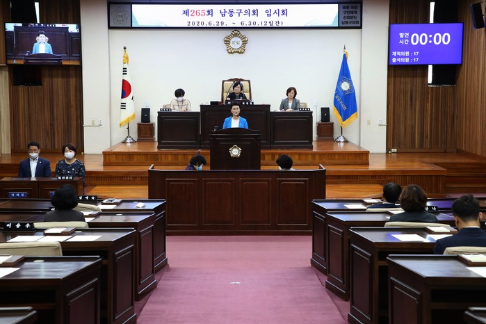 [인천=문찬식 기자] 인천 남동구의회는 29일 제265회 임시회 제1차 본회의에서 제8대 후반기 의회를 이끌어갈 의장 및 부의장 선거를 통해 임애숙 의원(더불어민주당)을 의장으로, 정재호 의원(미래통합당)을 부의장으로 선출했다.