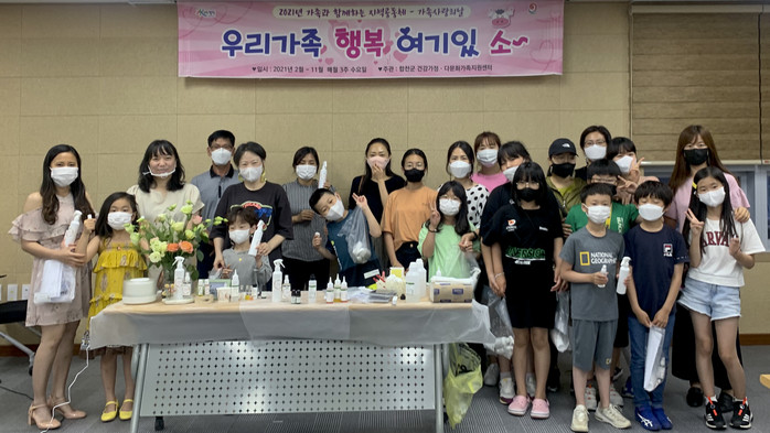 합천군(군수 문준희) 건강가정다문화가족지원센터에서는 지난 14일 가족사랑의날 프로그램으로 관내 군민 10가족을 대상으로 아로마오일로 만든 천연 모기퇴치제와 버물리를 만들어보는 시간을 가졌다고 밝혔다.