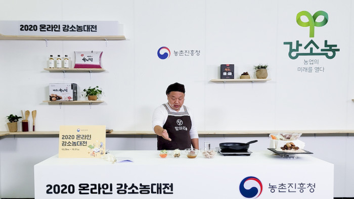경남 합천군 강소농 회원인 손창모(농업회사법인 밤마리 대표)는 지난달 31일 농촌진흥청 스튜디오에서 생방송으로 진행되는 온라인 강소농 대전에 참여하여 율피를 활용한 율피궁중떡볶이로 간편요리를 선보였다.