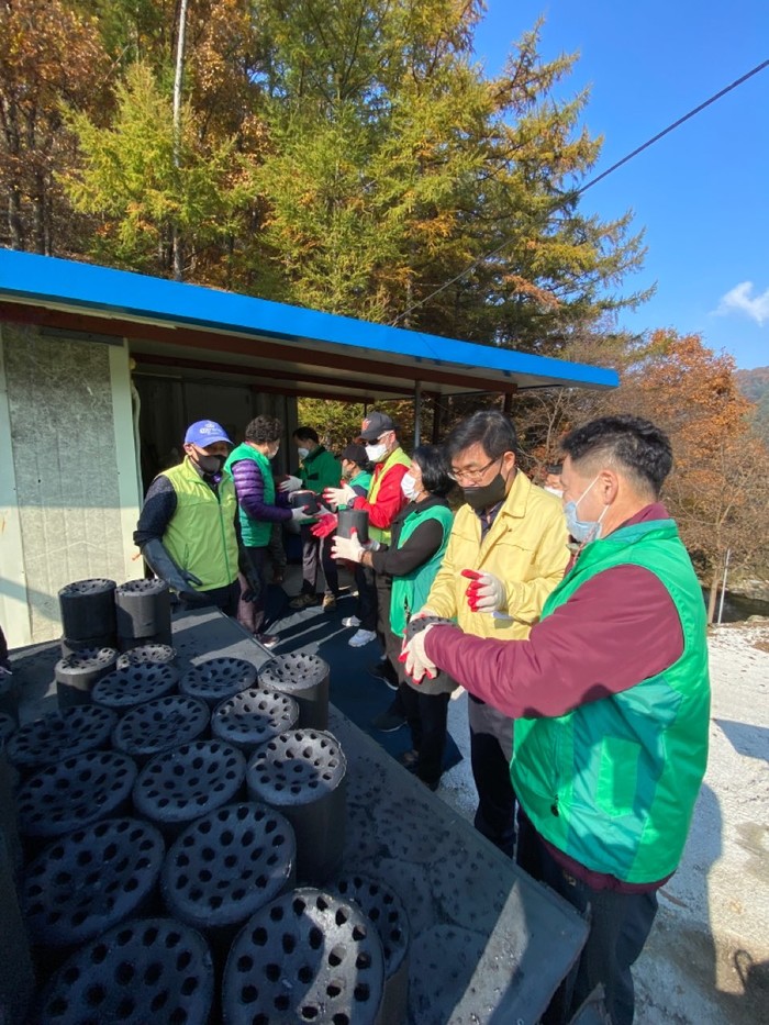 경기 동두천시 불현동 새마을남녀지도자회는 2일 불현동에 거주하는 주거취약계층 2가구에 연탄 700장을 전달했다. 사진은 이날 봉사자들이 연탄을 직접 배달하고 있는 모습. (사진제공=동두천시청)