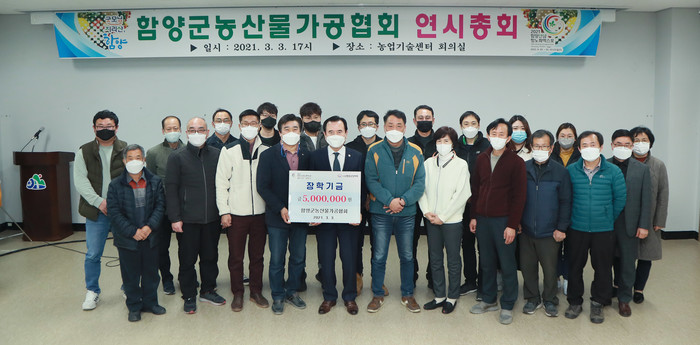 특히 이날 총회에서는 미래인재 발굴과 명문학교 육성을 위한 장학금 500만원을 (사)함양군장학회에 기탁하여 가공업체들의 훈훈한 사랑 나눔이 이어졌다.