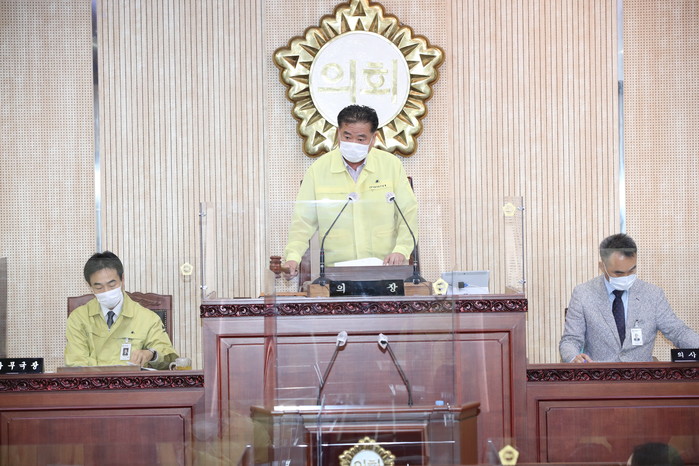 이번 임시회는 코로나19에 따른 사회적 거리두기가 1단계로 완화되었지만, 수도권 진정세가 더딤에 따라 사회적 거리두기 2단계 조치 일부 유지로 본회의 현장 방청을 제한하고 필수 인원에 한하여 참석 가능하도록 조치했다.