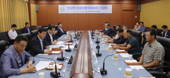 간담회에는 안효돈 위원장을 비롯한 위원 5명과 인지면 이장단협의회원 7명, 집행부 관계자 등 20명이 참석했다.