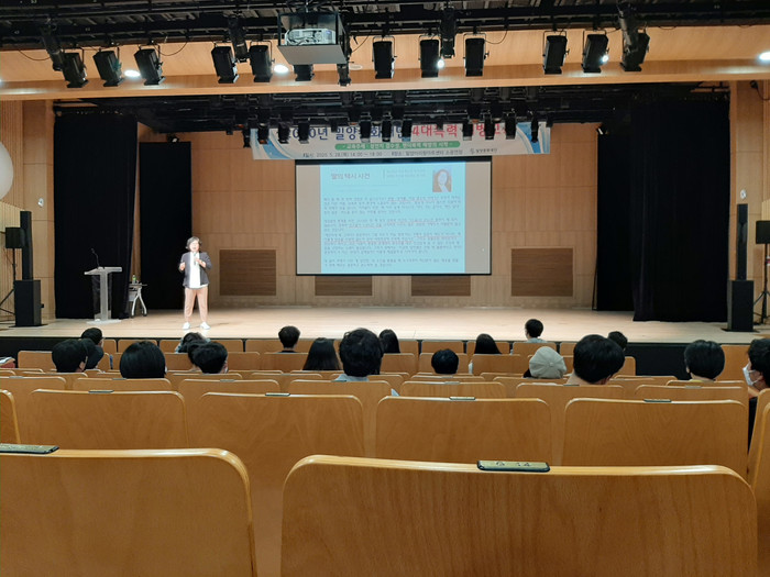이날 교육은 밀양문화재단 직장 내 건강한 조직문화를 조성하고 성인지 감수성 향상을 위해 한국양성평등교육진흥원 폭력예방 통합교육 전문 강사인 이서분 강사를 초빙하여 성폭력, 성희롱, 성매매, 가정폭력의 4대 폭력 예방을 주제로 진행됐다.