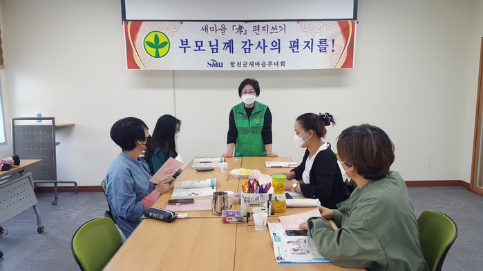합천군새마을부녀회(회장 김선자)는 5월 가정의 달을 맞아 코로나 19 사회적 거리두기로 자녀들의 왕래가 줄어들어 그리워하는 부모님에게 사랑과 감사의 마음을 전달하고자『효』편지쓰기운동을 전개하고 있다.