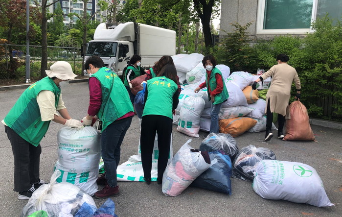 경기 포천시 소흘읍새마을부녀회는 12일 각 가정에서 쓰레기로 버려지는 헌옷 자원을 재활용하면서 불우이웃돕기 기금을 마련하고자 헌옷 수거행사를 실시해 총 2톤의 헌옷·이불 등을 수거했다. 사진은 이날 참여한 회원들이 헌옷을 수거한 뒤 기념촬영을 하는 모습. (사진제공=포천시청)