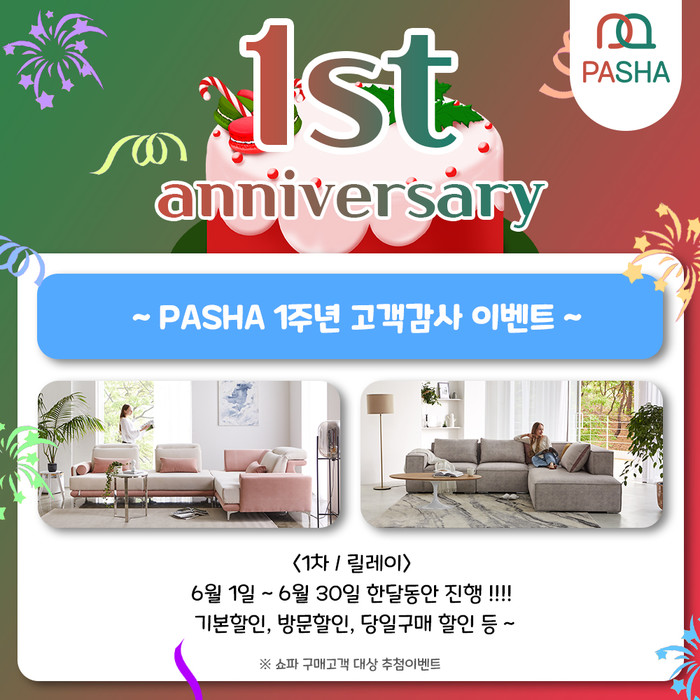 패샤 관계자는 “개발 계획부터 디자인까지 모든 공정을 직접 컨트롤하며 국내 자체공장에서 가구를 제작하고 있으며 패브릭 특유의 컬러감과 소재가 자아내는 분위기를 살려주는 인테리어 가구 제공하겠다”며 “지금 매장에 방문하셔서 1주년 기념 가격할인과 사은품 증정행사는 물론 품질보증기간 10년, A/S 관리 기간 1년의 체계적인 관리 시스템과 가구 전문가의 1:1 맞춤 상담 서비스를 직접 체험해 보시 길 바란다”고 전했다.