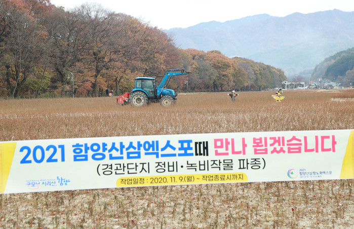 경남 함양군은 2021 함양산삼엑스포를 앞두고 상림경관단지를 정비하고 엑스포 기간에 식재될 꽃들을 위해 녹비작물인 보리를 파종할 계획이라고 밝혔다.