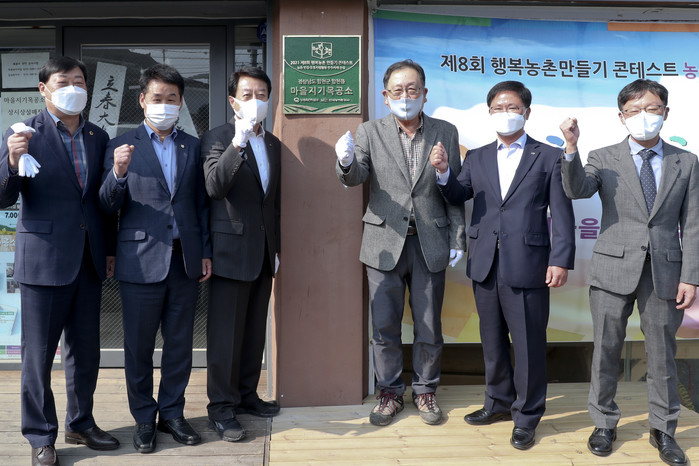 합천군(군수 문준희)은 27일 금년도 행복농촌만들기 콘테스트 농촌빈집·유휴시설 활용 우수사례분야에서 ‘은상’을 수상한 합천 마을지기 목공소(이사장 최종욱)에서 현판 제막식을 개최했다.