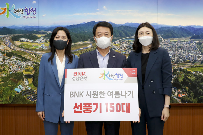 BNK경남은행 합천지점(지점장 백은숙)은 20일 합천군에 무더운 여름을 보내고 있는 취약계층에게 전달해달라며 선풍기 150대(420만원 상당)를 기탁했다.