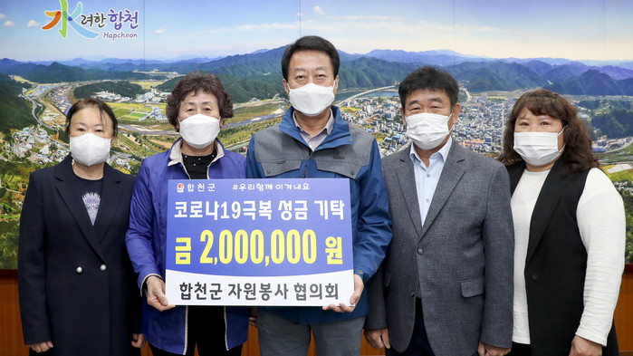 합천군자원봉사협의회(회장 이정임)는 지난 6일 합천군청을 방문해 코로나 19의 장기화로 어려운 시간을 보내고 있는 군민들을 위해 써 달라며 200만원을 기탁했다고 밝혔다.