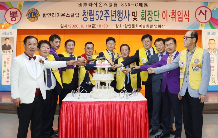 함안라이온스클럽은 지난 19일 오후 6시 30분 함안문화예술회관에서 창립 제52주년 기념 및 회장 이취임식을 개최했다.