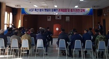 특히 군은 지난 20일 군청 대회의실에서 창녕경찰서와 합동으로 멧돼지 포획단원 및 총기 안전사고 예방교육, 멧돼지 사체처리 및 시료채취 요령 등에 대한 교육을 실시했으며, 단원에게 방역용품 및 시료채취키트를 배부하는 등 야생멧돼지 아프리카돼지열병 표준행동지침 준수를 위하여 박차를 가했다.