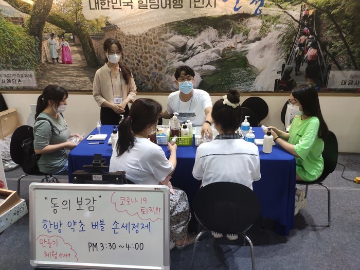 특히 국내 여행에 관심이 높아지는 최근 경향에 맞춰 산청지역의 비대면 힐링 여행지를 추천하는 한편 청정 지리산에서 자란 약재를 활용한 한방약초버블체험도 진행해 눈길을 끌었다.