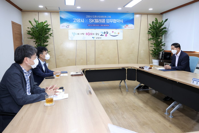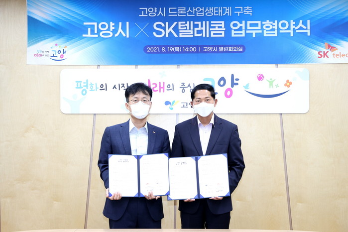 [고양=이기홍 기자] 고양시는 19일 고양시청 열린회의실에서 SK텔레콤(대표이사 박정호)과 고양시 드론 산업 생태계 구축을 위한 업무 협약을 체결했다.