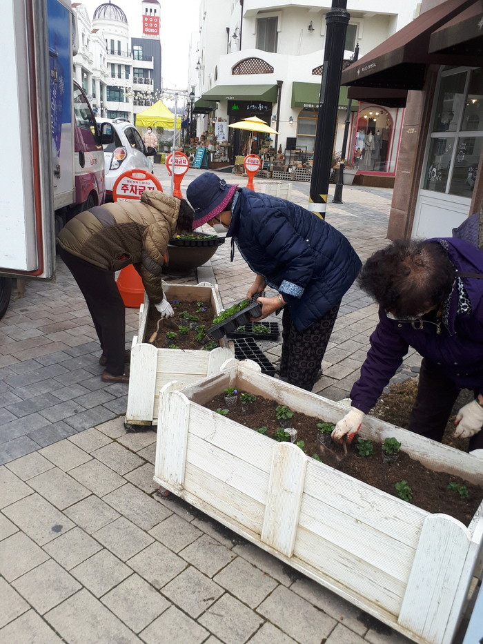 충남 아산시 탕정면이 최근 도시환경 정비와 관광활성화를 기대하며 지역 대표관광지 지중해마을에 봄꽃 3500본을 식재해 상춘객들을 맞이할 준비를 마쳤다. 사진은 지중해마을 주민들이 봄꽃을 식재하고 있는 모습. (사진제공=아산시청)