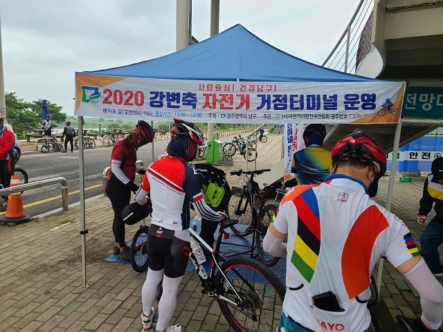| ▲ 사진은 광주시 남구에서 운영 중인 2020 강변축 자전거 거점터미널을 이용하고시민 자전거 라이더들 / 광주광역시 제공 |