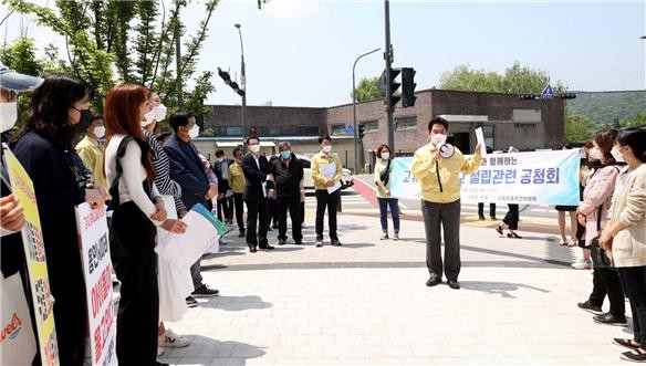 | ▲ 백군기 용인시장이 고림지구에 방문해 (가칭)고유초·중 설립 지연 문제를 해결하기 위해 주민들과 이야기를 나누고 있다 |