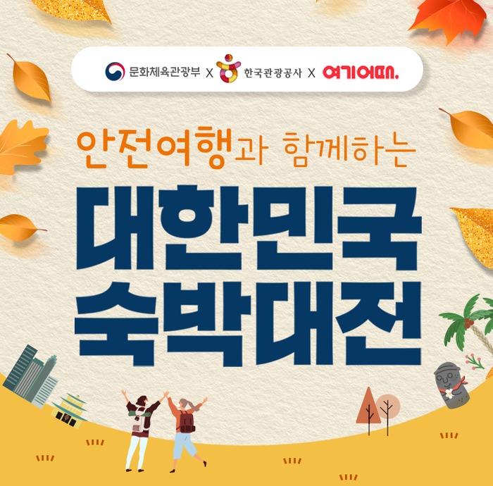 대한민국 숙박대전은 전 국민에게 최대 4만원의 숙박 할인 쿠폰을 선물하는 캠페인으로 대한민국 경제를 활성화하기 위해 올 가을, 겨울 여행을 위한 역대급 숙박 할인 혜택을 한 데 모았다.