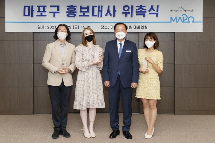 [시민일보 = 홍덕표 기자] 서울 마포구(구청장 유동균)가 최근 가수 마리아, 개그우먼 오마주, 개그맨 김경진을 구 홍보대사로 위촉했다.