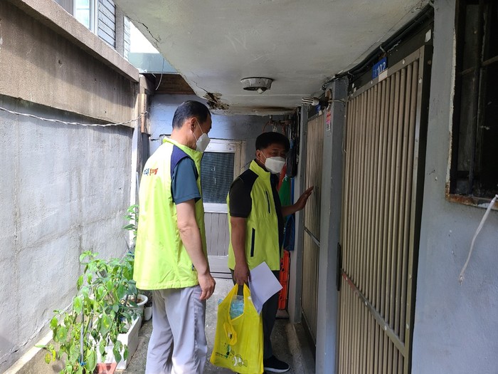 경기 구리시가 최근 수택2동 행정복지센터에서 수택2동 복지119보장협의체 주관으로 폭염 대비 저소득층 냉방물품 지원 행사를 열고 1인 청장년 50가구에 직접 방문해 냉방 물품인 쿨매트를 전달했다. 사진은 이날 봉사자들이 대상 가구에 쿨매트를 전달하고 있는 모습. (사진제공=구리시청)