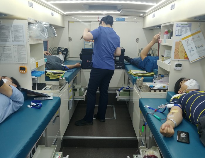 경기 오산시시설관리공단은 최근 코로나19 장기화에 따른 혈액 수급 부족 해결을 위해 대한적십자사 경기혈액원과 함께 '사랑의 헌혈 캠페인'을 실시했다. 오산스포츠센터 광장 헌혈버스에서 진행된 이번 사랑의 헌혈 캠페인에 공단 임·직원 및 시민 38명이 참여했다. 사진은 헌혈을 하고 있는 모습. (사진제공=오산시청)