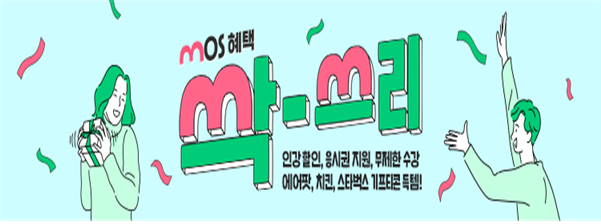 이번 이벤트는 MOS 2016, 2013 Master 인강을 수강하면 수강료를 할인해 주고, MOS 시험 응시권을 제공한다. 또, 추첨을 통해 에어팟, BBQ 치킨 기프티콘, 스타벅스 아메리카노 기프티콘을 준다.