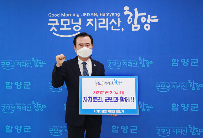 경남 함양군 서춘수 군수는 12일 자치분권 2.0 시대 개막을 응원하기 위해 진행 중인 ‘자치분권 기대해’챌린지에 동참했다.