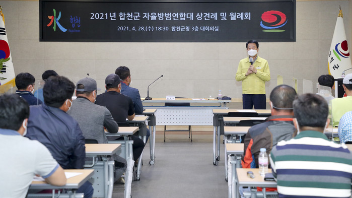합천군 자율방범대연합회(회장 문국주)는 지난 28일 합천군청 대회의실에서 문국주 신임회장을 비롯해 연합대 임원진과 읍면별 지대장 및 총무 40여명이 참석한 가운데 4월 월례회를 개최했다고 밝혔다.