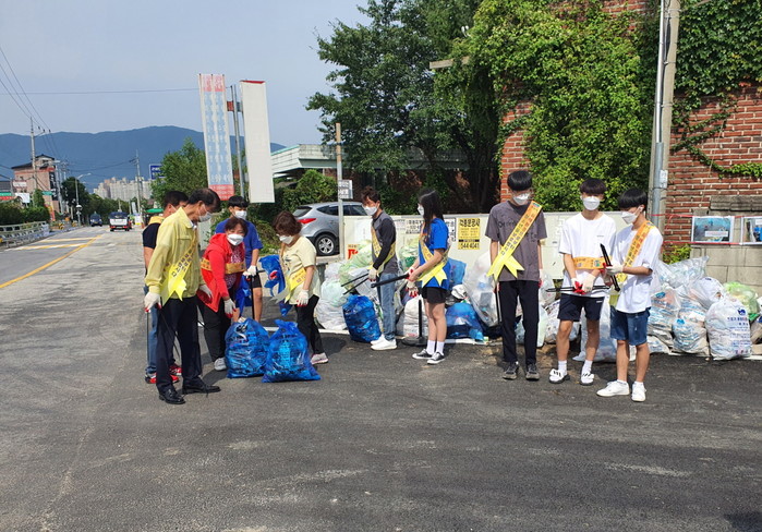경기 포천시 군내면 청소년지도위원회는 청소년들의 탈선을 예방하고 청소년 육성에 대한 지역사회의 관심을 유도하고자 지난 5일 청소년 유해환경 지도·단속 캠페인 및 환경정화 활동을 실시했다. 사진은 이날 참석한 봉사자 및 청소년들이 쓰레기를 치우고 있는 모습. (사진제공=포천시청)