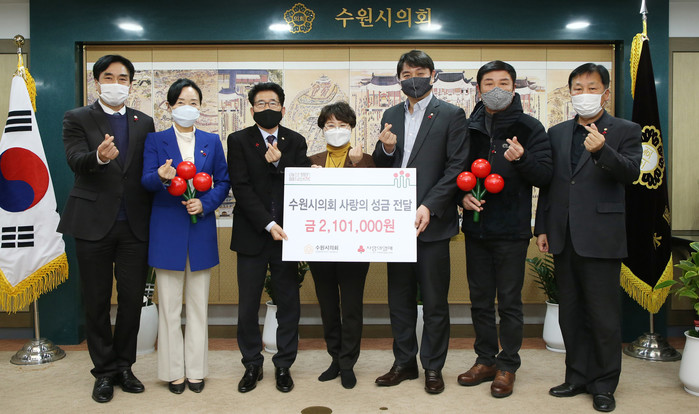 [수원=임종인 기자] 경기 수원시의회가 2일 의장실에서 경기사회복지공동모금회에 사랑의 성금을 전달했다.