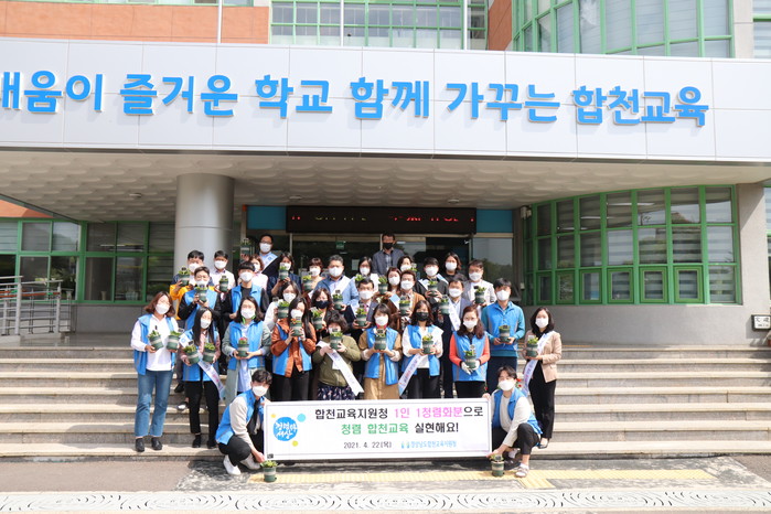 합천교육지원청(교육장 정종화)은 4월 22일 오전 전 직원이 참여한 가운데 각자의 청렴실천 의지와 공정하고 청렴한 공직문화 조성을 위해 “합천교육, 청렴으로 활짝 피어라” 1인 1청렴화분 가꾸기 행사를 실시하였다.