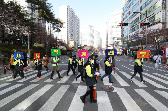 경기 화성시는 코로나19 확산 차단을 위한 ‘사회적 거리두기-잠시멈춤’ 캠페인에 동참하고 있다. 이는 오는 4월5일까지 불필요한 모임이나 행사를 연기하고 개인위생수칙을 준수하며, 외출을 자제하는 것이다. 사진은 캠페인을 홍보하는 모습. (사진제공=화성시청)