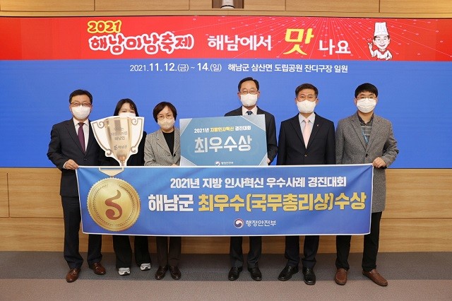 [해남=정찬남 기자] 전남 해남군이 행정안전부에서 주관하는 지방인사혁신 경진대회에서 전국 군 단위로는 유일하게 최우수 자치단체로 선정돼 국무총리상을 수상했다.