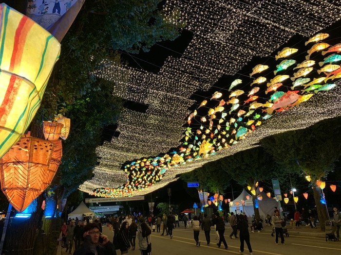 최근 ‘행복해요! 선사빛’을 주제로 서울 암사동 유적 일대에서 6000년 전 이곳에 살았던 신석기인들의 행복한 일상을 담은 볼거리, 즐길거리를 선보인 ‘제24회 강동선사문화축제’가 성황리에 막을 내렸다. 사진은 2100여개 한지 등이 수놓인 ‘선사빛거리’ 전경. (사진제공=강동구청)