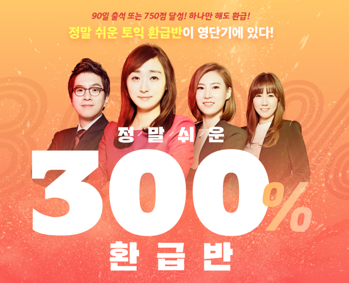 이에 더해 토익 수험생들의 토익 졸업 독려를 위해 토익 850점 달성 시 200%, 950점 달성 시에는 최대 300%까지 파격적인 추가 환급 혜택도 주어진다.