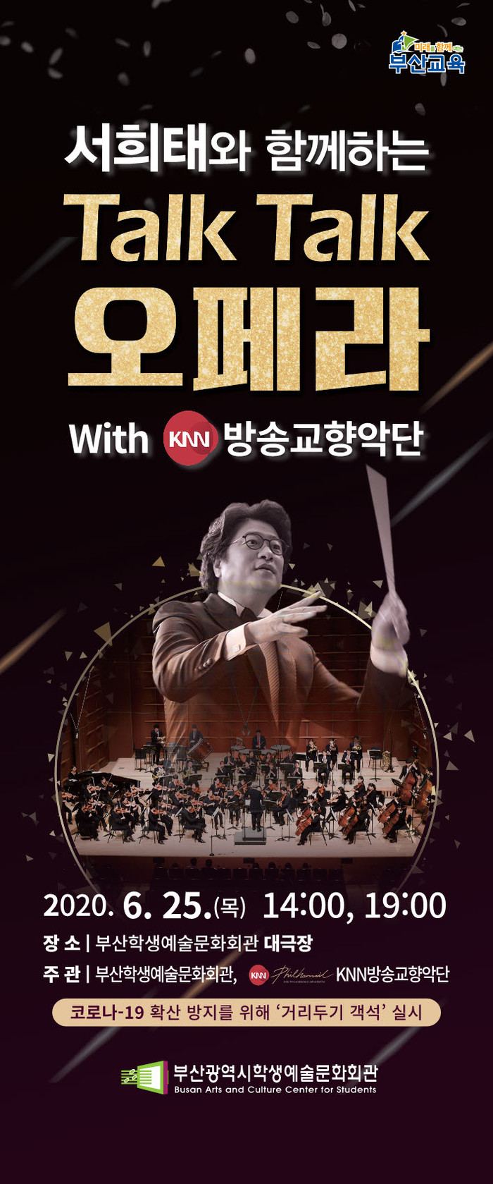 부산광역시학생예술문화회관(관장 이정옥)이 6. 25. 오후 2시와 7시 학생예술문화회관 대극장에서‘서희태와 함께하는 Talk Talk 오페라’를 개최한다.