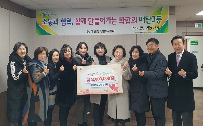 경기 수원시 영통구 매탄3동 지역사회보장협의체는 5일 새학년 시작과 입학을 축하하고 응원하며, 저소득층의 경제적인 부담을 덜어주기 위한 희망드림 신학기용품 전달식을 했다. 사진은 전달식에 참여한 관계자들이 기념촬영을 하는 모습. (사진제공=영통구청)